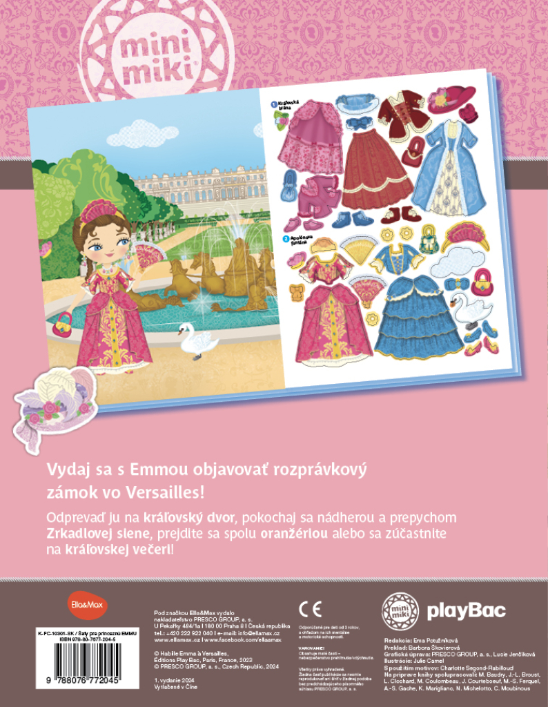 Vydejte se s oblíbenou francouzskou panenkou Emmou na návštěvu pohádkového zámku ve Versailles! Doprovoďte ji na královský dvůr, pokochejte se nádherou a přepychem komnat, projděte se spolu úchvatným zámeckým parkem… Při tom všem se budete bavit s více než 300 překrásnými samolepkami, poznáte něco z historie i současnosti nejznámějšího francouzského zámku i života někdejší šlechty. Díky dvojjazyčným textům v obrázcích pak bude poznávání ještě zábavnější a komplexnější.| EAN | 9788076772045 |