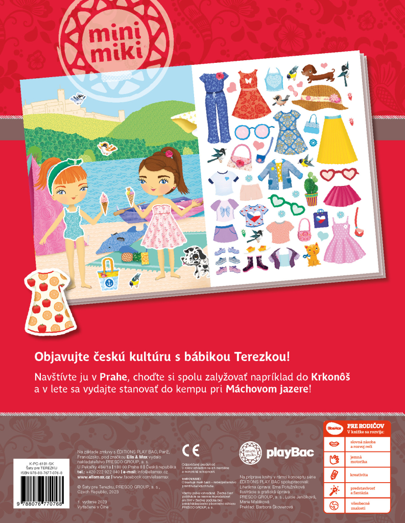 Objevujte českou kulturu s panenkou Eliškou! Anebo byste raději jako průvodkyni po vlasti zvolili Aničku, Adélku, případně Viktorku? Vyberte si panenku podle vlastního vkusu - každá z nich vás vezme na nejznámější místa našeho hlavního města Prahy, navštívíte spolu folklorní vystoupení, ples, podniknete túru, výlet na pohádkový zámek Hluboká, budete kempovat u Máchova jezera a v zimě si zalyžujte v Krkonoších. S více než 300 samolepkami a překrásnými obrázky je objevování jedna radost! Titul ze série, která patří k našim nejprodávanějším, přibližuje malým čtenářům tím nejjednodušším a zároveň hravým způsobem něco z kultury naší země a představuje jim známá místa a české památky.| EAN | 9788076770768 |