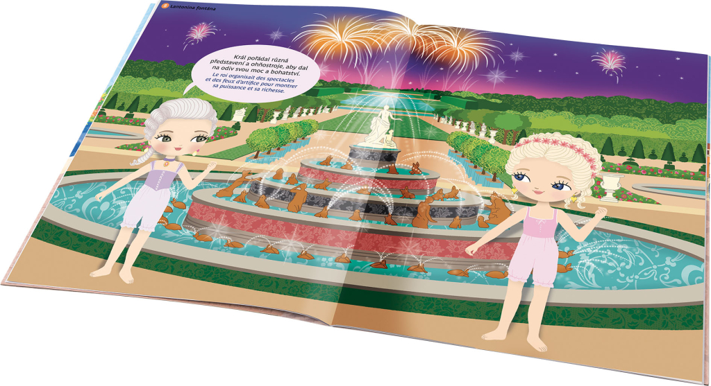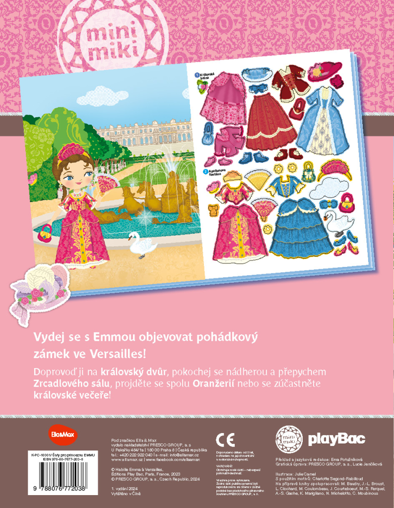 Vydejte se s oblíbenou francouzskou panenkou Emmou na návštěvu pohádkového zámku ve Versailles! Doprovoďte ji na královský dvůr, pokochejte se nádherou a přepychem komnat, projděte se spolu úchvatným zámeckým parkem… Při tom všem se budete bavit s více než 300 překrásnými samolepkami, poznáte něco z historie i současnosti nejznámějšího francouzského zámku i života někdejší šlechty. Díky dvojjazyčným textům v obrázcích pak bude poznávání ještě zábavnější a komplexnější.