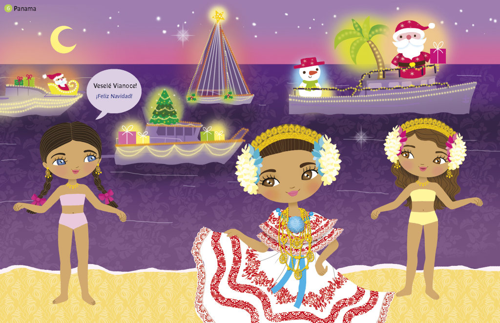 Objevujte, jak se slaví Vánoce v různých koutech světa! Oslavujte s panenkami po celé zeměkouli. Doprovoďte je na přehlídku překrásně osvětlených lodí v Panamě, na tradiční vánoční trhy v Německu nebo zavítejte do domečku Santa Clause. Díky této novince ze série, která patří k našim nejprodávanějším, poznají malí čtenáři tím nejjednodušším a zároveň hravým způsobem, jak se slaví Vánoce za našimi hranicemi, poznají cizí zvyky, módu i mnohá zajímavá místa. Atraktivní obrázky mohou doplňovat více než 300 úžasnými samolepkami!| EAN | 9788076771796 |