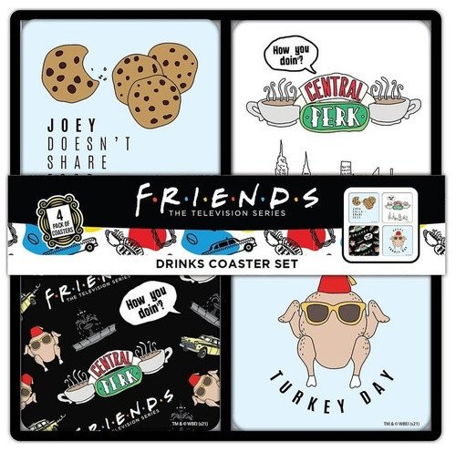 Fanoušky televizního seriálu Friends zajisté potěší sada podtácků s grafikou, logem a fotografiemi tohoto seriálu. Podtácky jsou vyrobeny z kvalitního korku, tak vám vydrží po dlouhou dobu. V sadě najdete 4 ks podtácků Friends. Podtácky patří k oficiálně licencovaným výrobkům