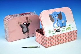Dětský kufřík s obrázkem oblíbeného dětského hrdiny Krtečka. Ulož si do kufříku pastelky, vodovky, fixy a vůbec všechny pomůcky na výtvarnou výchovu. Kvalitní český výrobek. Velikost 30 cm. Papírové kufříky s uchem se hodí do každého pokojíku. Vhodné na hračky či jiné drobnosti.