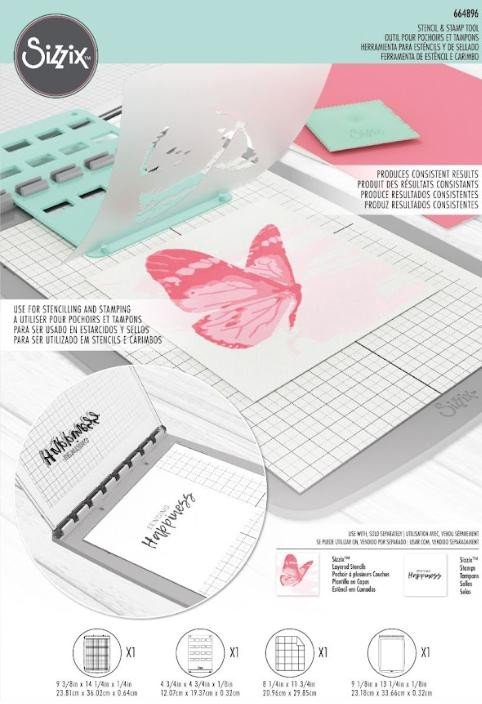 Pomůcka pro přesné razítkování a šablonování. Usnadňuje šablonování i přesné razítkování. Budete mít vše, co potřebujete k vytvoření krásných papírových, cardmakingových a scrapbookingových projektů. Zajistíte, že vaše vrstvené šablonované a razítkované projekty budou vždy v perfektní poloze a budou mít dokonalou přesnost. Tento jedinečný nástroj sníží množství kreativních pomůcek, které potřebujete. Součástí nástroje Stencil & Stamp Tool je průhledná deska s mřížkou A + D, adaptér na šablony B a list lepicí mřížky C (viz doplňková fotka). Tento nástroj Sizzix má také pěnovkovou základnu pro neklouzavý rovný povrch. Čirá razítkovací destička se snadno připevňuje k pantu a poskytuje dokonalý přítlak při tisku. Kromě kolekce vrstvených šablon můžete tento všestranný nástroj také spárovat se svými oblíbenými razítky. Snadno přilnou k desce, což vám umožní umístit razítko na váš projekt před nanesením inkoustu, což zajistí, že budete tisknout přesně tam, kam potřebujete. Razítko můžete znovu nabarvit inkoustem a otisknout. Rozměry: 24,76 cm x 36,02 cm x 1,59 cm. Obsahuje: průhledná deska s mřížkou A + D, adaptér na šablony B a list lepicí mřížky C (viz doplňková fotka). Šablona, aplikátor ani razítka nejsou součástí balení. Chcete-li použít nástroj Sizzix Stencil & Stamp Tool s kolekcí vrstvených šablon, začněte tím, že položíte vybraný povrch šablony na horní stranu lepicí mřížky (je opatřena lehkým lepidlem) na základně nástroje, aby zůstala na místě. Nezapomeňte, čáry na mřížce usnadňují zarovnání vašich vrstvených šablon. Poté připevněte adaptér šablony mátové barvy do požadované polohy a bezpečně připevněte vybranou šablonu s vrstvami ke kolíkům na adaptéru pomocí přiložených otvorů. Poté jednoduše aplikujte zvolené médium. Jakmile dokončíte práci s vaší první šablonou, odejměte ji a vyměňte ji za další a pokračujte ve vytváření vrstev, abyste vytvořili svůj úžasný design. Využijte tyto šablony květina, kolibřík, motýl, květinová mozaika, listy, květiny, pohlednice. Návod na použití: 1. Odstraňte adaptér šablony ze základny a razítka a umístěte základnu na pevný povrch s pěnovým podkladem čelem dolů. 2. Odstraňte fólii z lepicí mřížky. Snímací fólie nevyhazujte. 3. Umístěte na lepicí mřížku projekt, který chcete šablonovat. 4. Umístěte adaptér šablony na závěs tak, aby byl svisle a vodorovně zarovnán s požadovaným povrchem/projektem. 5. Umístěte první vrstvenou šablonu (označenou „1“) na dva kolíky ve spodní části adaptéru šablony. 6. Naneste požadované médium na šablonu a vytvořte první vrstvu. 7. Odstraňte šablonu 1 a nahraďte ji šablonou 2. Naneste další vrstvu média přes šablonu. 8. Opakujte stejný postup pro zbývající vrstvené šablony v číselném pořadí. 9. Opatrně odstraňte vyražený povrch/projekt z lepicí mřížky a vyměňte uvolňovací fólie na lepicí mřížce.