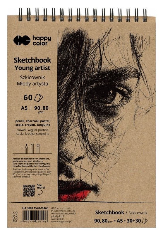Skicák s tvrdou podsadou. Obsahuje dva druhy papíru: přirozeně bílý 90 g/m2 s jemným zrnem a hnědý 80 g/m2, lehce drsný. Doporučuje se pro kreslení a skicování tužkou, pastelkami, pastelkami, dřevěným uhlem, sépií a sanguinem.