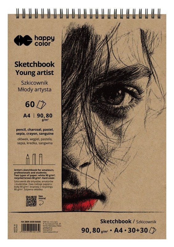 Spirálový skicák s tvrdými deskami obsahuje dva druhy papírů – jemně zrnitý přírodně bílý s gramáží 90g/m2 a lehce drsnější okrový papír o gramáži 80g/m2. Je vhodný pro kresbu tužkou, pastelkami, pastely, uhlem, sépií či rudkou. Díky dvěma různým druhům papíru je možné vytvářet různé efekty při využití stejné techniky malování a tím rozvíjet své malířské umění.