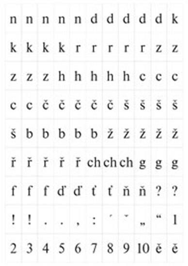 - Obsahuje vystřihovací kartičky s písmeny, slabikami a interpunkcí.