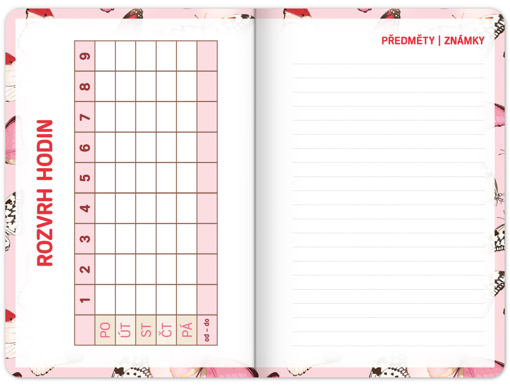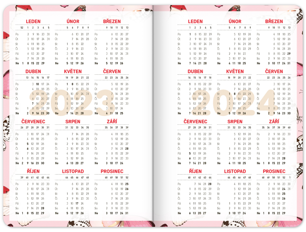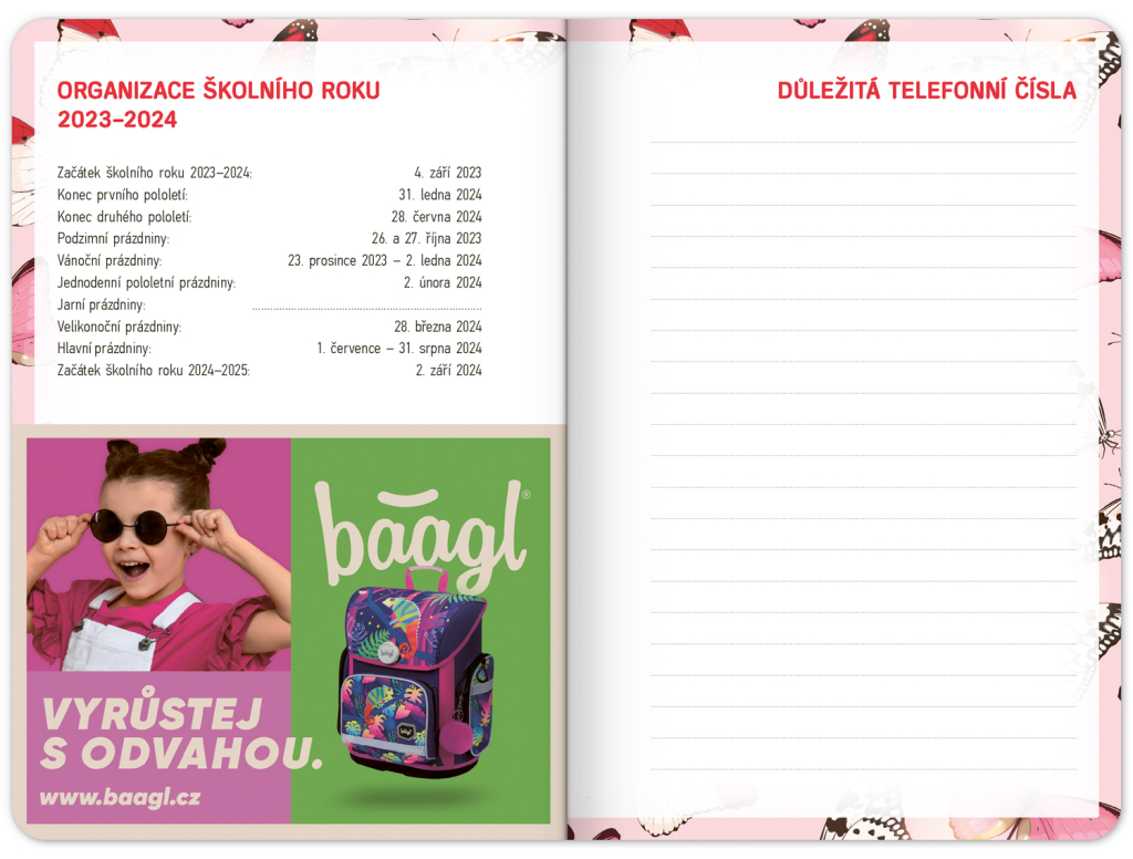 Školní diář Motýlci (září 2023 – prosinec 2024), 9,8 × 14,5 cm