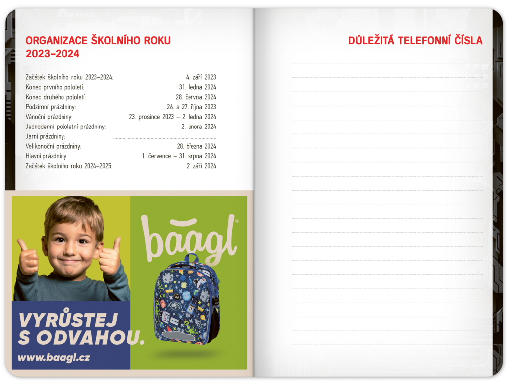 Školní diář Technik (září 2023 – prosinec 2024), 9,8 × 14,5 cm