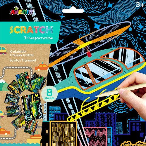Vyškrabávací pero je přizpůsobené dětem a škrábe pouze jemně. V sadě Avenir děti najdou osm obrázků.