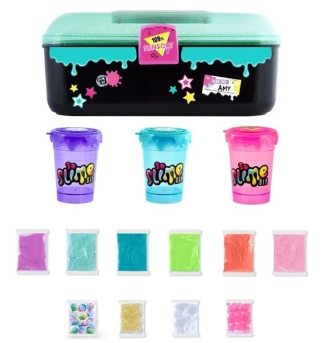 Toto je úplná novinka So Slime – Zábavný kufřík se slizem. Vytvořte si jedinečné barevné slizy. Míchejte slizy a přidejte ozdoby! Sliz natáhněte a užijte si zábavu. Obsah: 6 sáčků barevných slizů, 4 druhů ozdob do slizu, 3 x kelímek, špachtle na míchání. Vhodné pro děti od 6ti let.