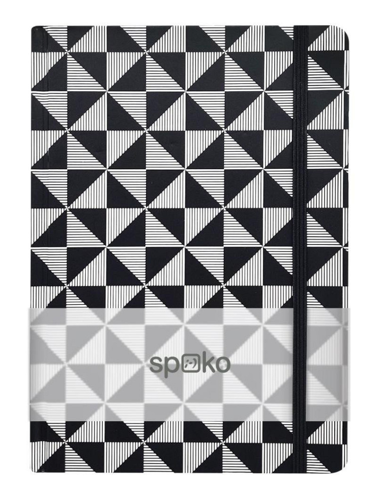 Kolekce praktických zápisníků s širokou škálou motivů je ideální na zapisování denních poznámek, myšlenek nebo kreativních nápadů. Fixační gumička pomáhá držet zápisník uzavřený a chrání obsah uvnitř. Plochá textilní záložka usnadňuje orientaci mezi poznámkami. Praktický zápisník s geometrickým motivem v kontrastních barvách černé a bílé. •obálka: karton •formát: A5, 75 g/m •linkovaný •96 stránek •plochá fixační gumička •textilní záložka
