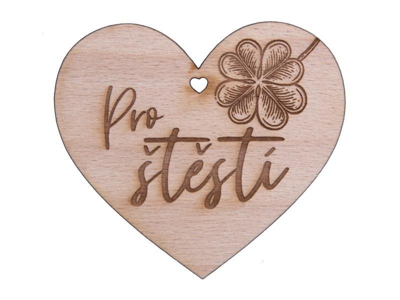 Malé dřevěné srdíčko s dírkou ve tvaru srdce a gravírovaným milým vzkazem. Poslouží jako drobnost k dárku, ale i jako samostatný dárek.