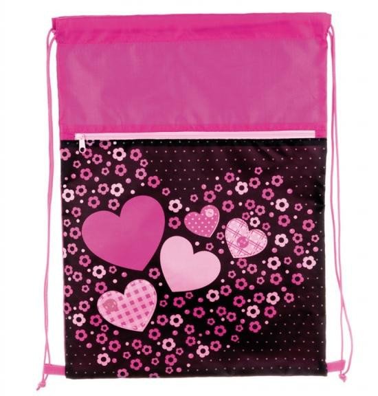 Sáčky na cvičky jsou praktickým doplňkem školní aktovky pro uložení přezůvek či věcí na tělocvik. Vodoodpudivý pevný materiál udrží věci v suchu. Kapsa na zip oddělí boty od ostatního oblečení. Stahovací šňůrka spojená se spodní částí promění sáček v malý batůžek na záda.