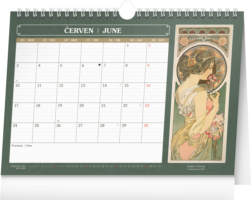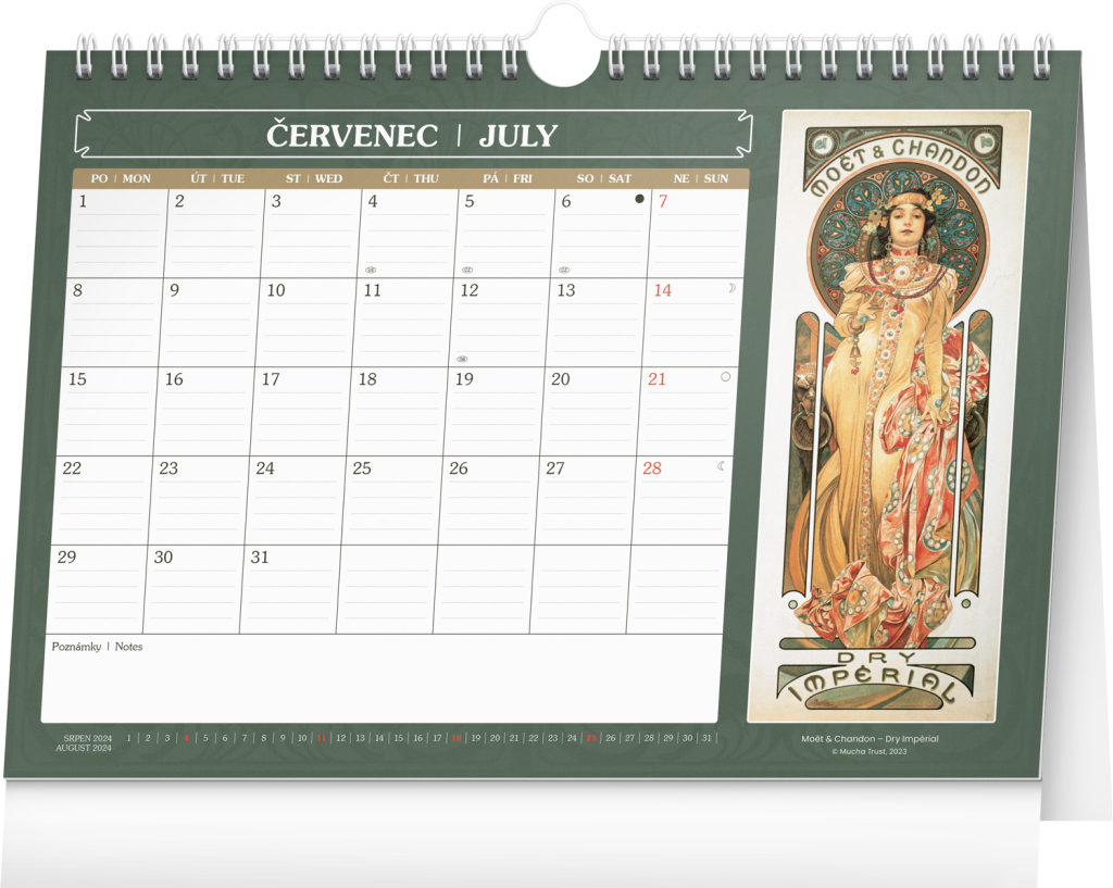 Stolní kalendář Alfons Mucha 2024, 30 × 21 cm