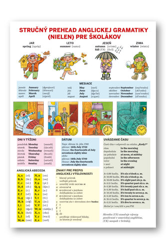 Anglická gramatika v kocke. Aj tak možno nazvať tento stručný, ucelený a prehľadne usporiadaný súhrn anglickej gramatiky. Počnúc abecedou, predložkami in, on, at, základnými a radovými číslovkami a znakmi pre prepis anglickej výslovnosti cez dni v týždni, mesiace, uvádzanie času, dátumu, ročné obdobia, ale aj výrazy pre množstvo, množné číslo podstatných mien, členy, osobné a privlastňovacie zámená a najpoužívanejšie frázové slovesá, vzťažné a opytovacie zámená až po stupňovanie, časovanie, spôsobové a nepravidelné slová, podmieňovací spôsob a oveľa viac – skrátka tu nájdete všetko, čo je pre osvojenie gramatiky anglického jazyka nevyhnutné. Jednotlivé informácie sú prehľadne usporiadané a gramatické javy uvedené na príkladoch tak, aby ste mali pri štúdiu angličtiny vždy po ruke pohotového a užitočného pomocníka.