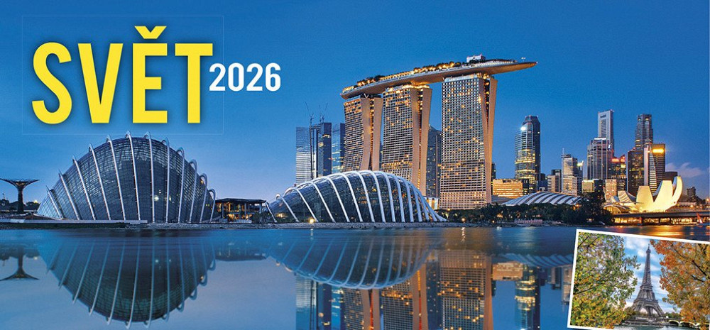 Kalendář 2026 Svět, stolní, 29,7 x 13,8 cm.