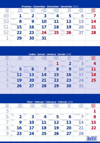 Tříměsíční kalendář modrý 2026 - nástěnný kalendář
