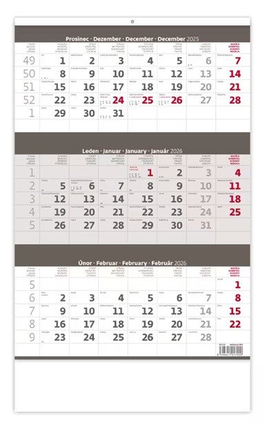 Tříměsíční kalendář šedý 2026 - nástěnný kalendář
