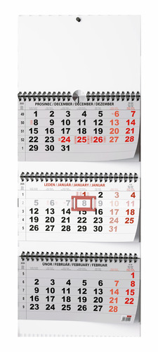 Praktický skládací nástěnný kalendář s tříměsíčním kalendáriem a posuvným jezdcem vhodný do Vaší kanceláře.