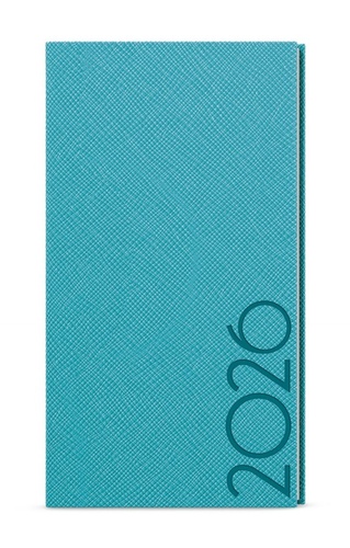 Kapesní týdenní diář v tyrkysové barvě se strukturovaným povrchem. Moderní doplněk do každé kapsy. Diář má velký prostor pro poznámky a plánování.