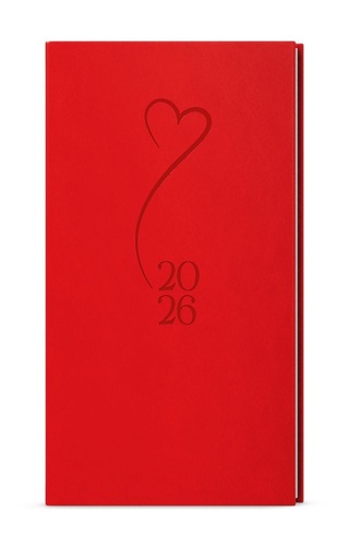 Kapesní týdenní diář v červené barvě je vyráběný z jemné hladké vivelly s efektní ražbou s motivem Srdce. Trendy a praktický doplněk do každé kapsy. Diář má velký prostor pro poznámky a plánování.