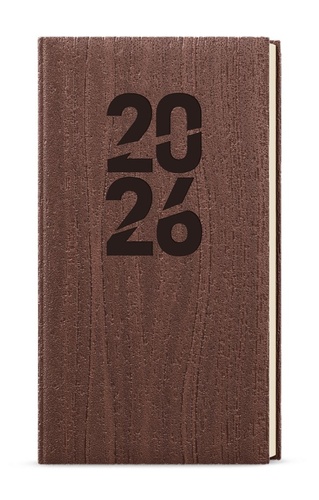Kapesní týdenní diář s přírodním motivem dřeva s ražbou. Je vyráběný z jemně strukturovaného materiálu, má velký prostor pro poznámky a plánování.