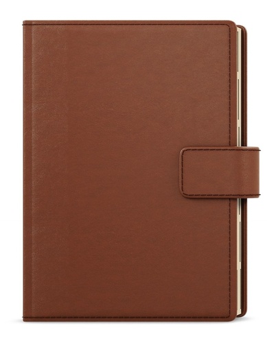 Elegantní týdenní diář ve formátu A5 se stylovým a znovupoužitelným obalem v hnědé barvě. Praktické vnitřní uspořádání nabízí množství přihrádek na vizitky, poutko na tužku a bezpečné magnetické zavírání. Diář bude působit luxusně a profesionálně – ideální volba pro práci, podnikání i osobní organizaci.
