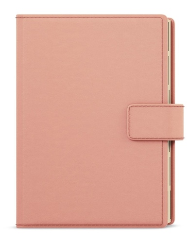 Elegantní týdenní diář ve formátu A5 se stylovým a znovupoužitelným obalem v růžové barvě. Praktické vnitřní uspořádání nabízí množství přihrádek na vizitky, poutko na tužku a bezpečné magnetické zavírání. Diář bude působit luxusně a profesionálně – ideální volba pro práci, podnikání i osobní organizaci.