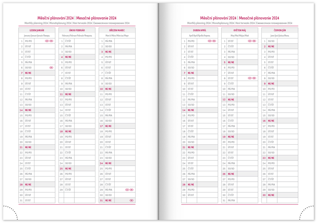 Týdenní diář Balacron 2024, zelený, 15 × 21 cm