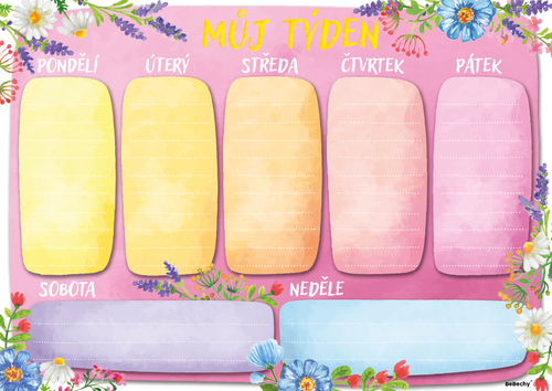 Strukturovaný přehled týdne, který vám pomůže lépe rozvrhnout čas. Nabízí prostor pro pracovní úkoly, schůzky i osobní poznámky. Skvělý nástroj pro každodenní organizaci bez stresu.