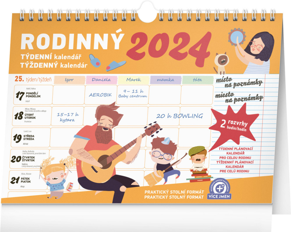 Týdenní rodinný plánovací kalendář s háčkem 2024, 30 × 21 cm