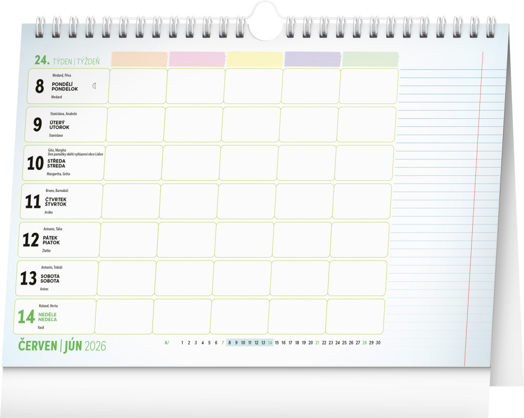 Pro zvládnutí rodinného chaosu je tady týdenní rodinný kalendář, ve kterém si čas naplánuje až pětičlenná rodina. Kalendář můžete použít jako stolní nebo ho pomocí háčku zavěsit na zeď. Obsahuje české a slovenské kalendárium.