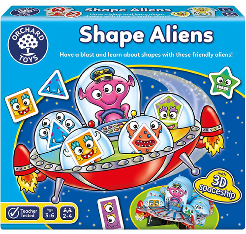 Užijte si tuto zábavnou vesmírnou hru. Hráči se střídají v přiřazování svých karet s tvary k mimozemšťanům. Jakmile najdou shodu, vpustí svého mimozemšťana na palubu 3D vesmírné lodi připravené k odpálení!