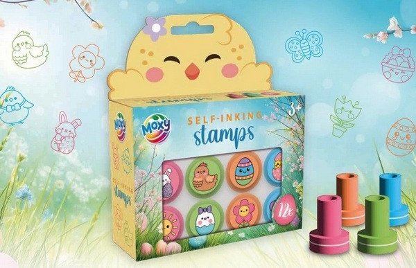 Velikonoční razítka, 12 různých motivů - barevná razítka pro děti, která nepotřebují inkoust. Podporují kreativitu, fantazii a jemnou motoriku. Ideální na tvoření, zdobení, přání i vzdělávací hry.