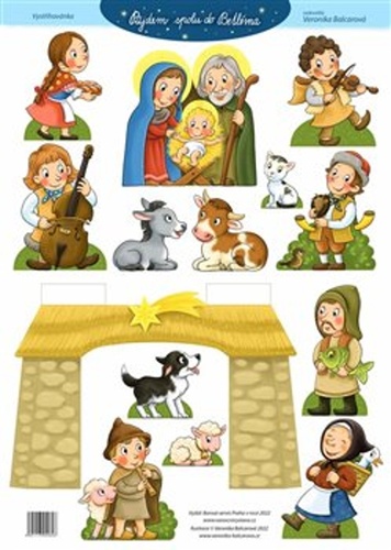 K letošní vánoční výstavě Vánoce z papíru vystřižené v Betlémské kapli 2022 vydáváme vystřihovací betlém, který pro nás namalovala Veronika Balcarová. Jsou to dva archy A3 vytištěné na tvrdším papíru (300g), aby nebylo nutné figurky lepit na karton nebo překližku. Tento velice radostně a vesele se tváříci betlém je namalován tak, aby se snadno vysřihoval. Chtěli jsme , aby to zvládli i malé děti. Věříme, že v mnoha rodinách, při společné práci nad tímto betlémem zavládne přijemná adventní tvůrčí pohoda plná radostného vánočního očekávání.