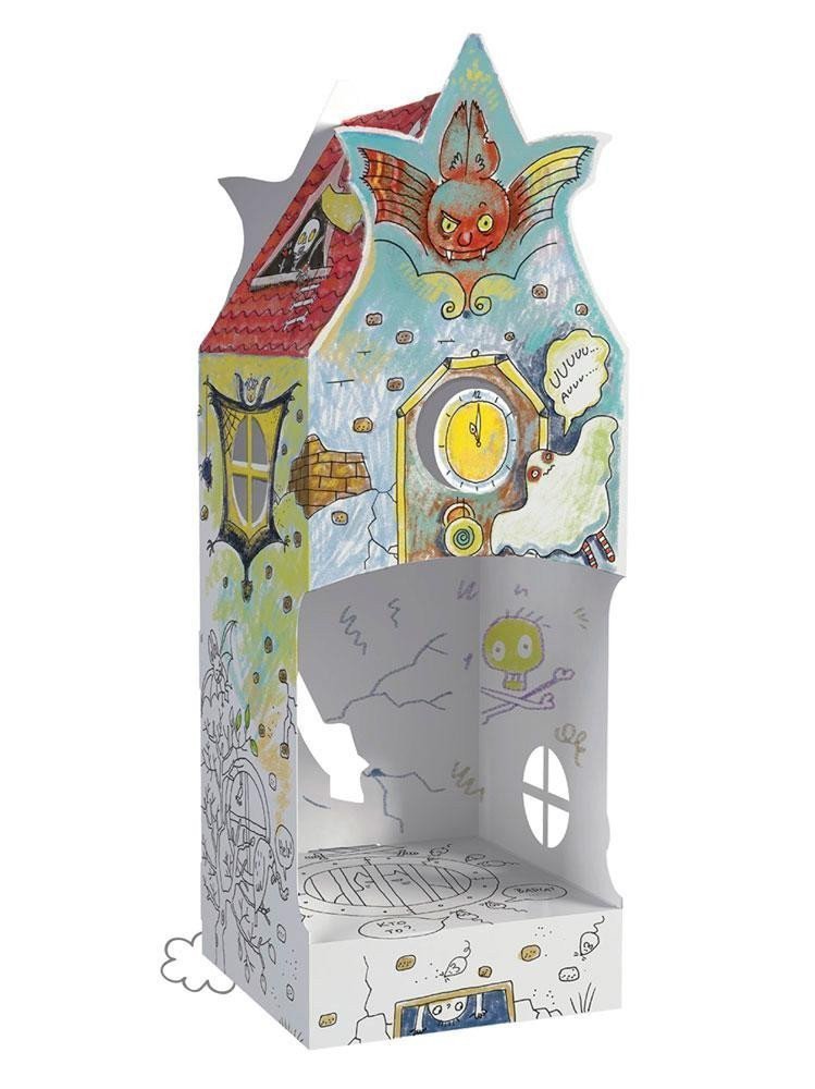 Tato dvoupatrová Vila s okny a otevřenými podlažími je vhodná pro hru s hračkami, které je možné pokládat na police dovnitř. Konstrukce je vyrobena z pevné lepenky, hladce ořezaná a snadno sestavitelná. Vhodná pro vymalování pastelkami, voskovkami, fixy nebo barvami. Můžeš sbírat i další domečky a vytvořit si vlastní sbírku.
