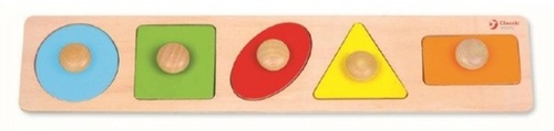 Vkládačka pro nejmenší - geometrické tvary. Vhodné pro děti od 1 roku. 5 různých tvarů. Rozměry vkládačky: 45 x 9 x 2 cm. Rozvíjí motorické schopnosti dítěte.