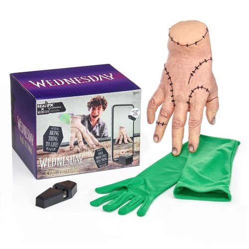 Vložte svou ruku do jediné oficiálně licencované a dokonale přesné repliky Thingu a oživte ji! Pro ta nejneuvěřitelnější videa je zahrnuta aplikace speciálních efektů. Vhodné pro malé až středně velké ruce. Oživte věc tím nejneobyčejnějším způsobem! Pomocí přiložené video aplikace můžete vytvářet videa, díky nimž bude Thing vypadat přesně jako rozřezaná ruka, kterou můžete vidět ve středeční sérii na Netflixu.