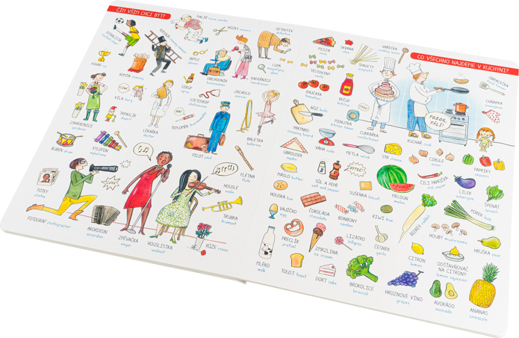 Leporelo plné obrázků a českých i anglických slovíček zaujme ty nejzvídavější malé čtenáře.