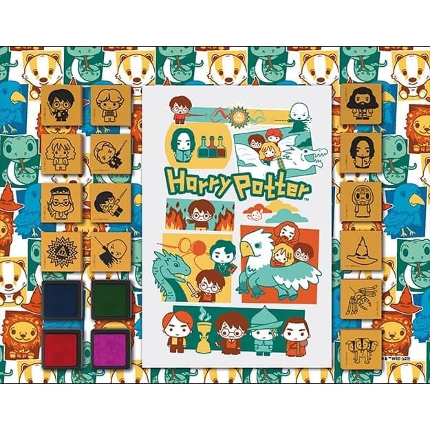 Set obsahuje 14 pěnových razítek, 4 barevné podušky a blok plný zábavných aktivit k luštění a vyplnění.