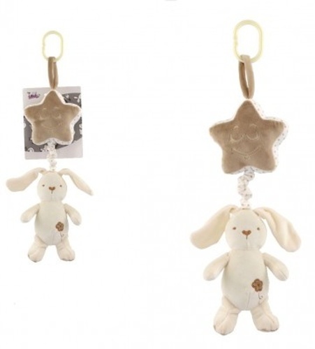 Natahovací plyšový zajíc s hvězdou hraje příjemnou melodii, která miminko uklidní a pomáhá mu při usínání. Hračku lze zavěsit za pomocí klipu na postýlku nebo kočárek. Hrací strojek je zabudovaný uvnitř hvězdičky, zajíček slouží jako natahovací klip.