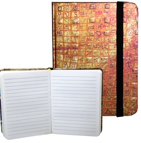 Zápisník s gumičkou 95x140 mm zlatý s červenou mřížkou A