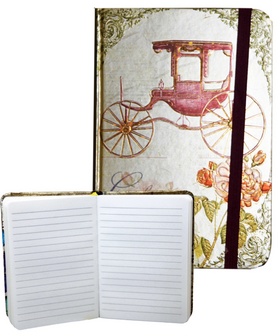 Zápisník s gumičkou 95x140 mm zlatý s kočárem A