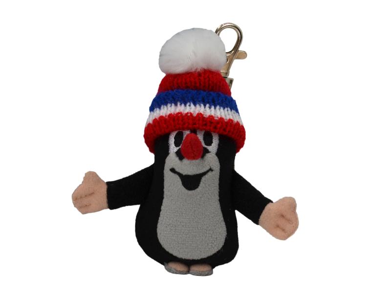 Plyšový přívěsek na kovové karabině. Krteček s kulichem v barvě trikolóry červené. Ruční praní.Doporučený věk: od 1 roku.