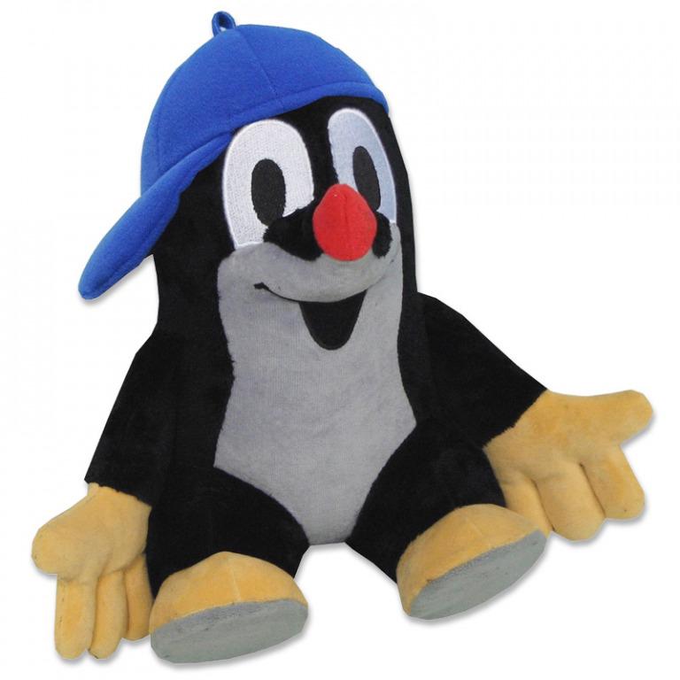 Sedící plyšový Krteček s rošťáckou kšiltovkou. Praní na 40°C.Pro děti bez omezení věku.
