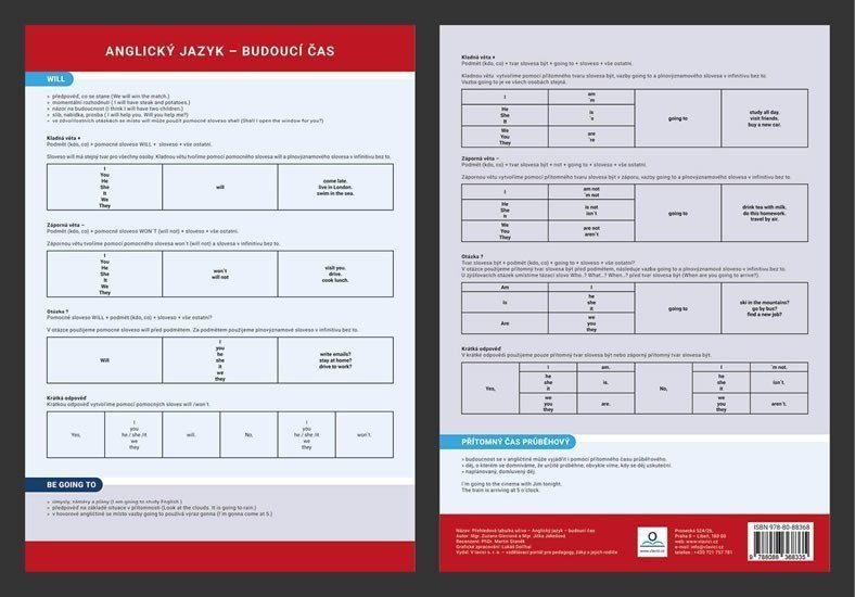 Přehledová tabulka učiva slouží jako doplnění gramatiky angličtiny a rozšiřuje učivo žákům prvního