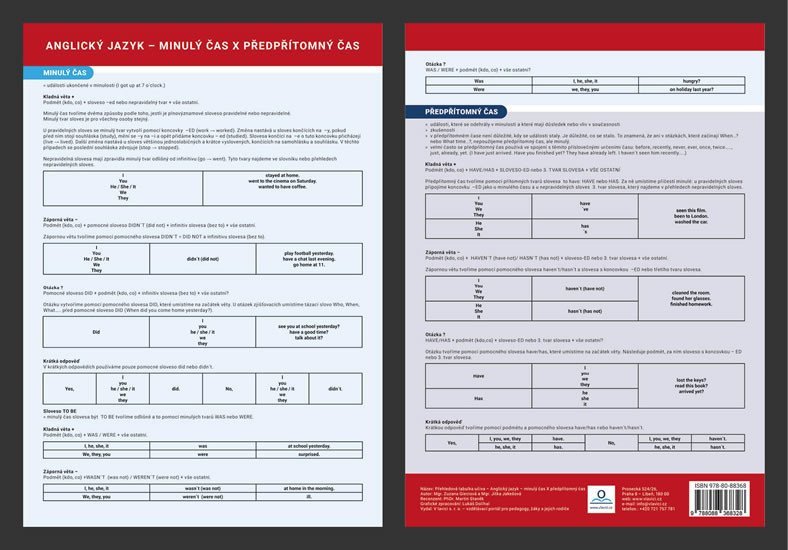 Anglický jazyk - Minulý čas X předpřítomný čas - Přehledová tabulka učiva